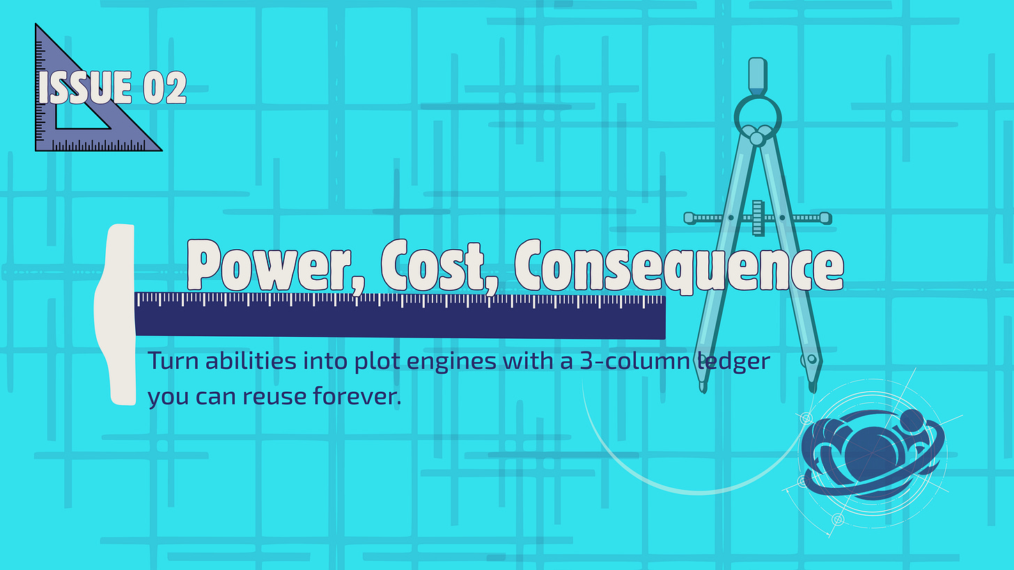 Turn abilities into plot engines with a 3-column ledger you can reuse forever.